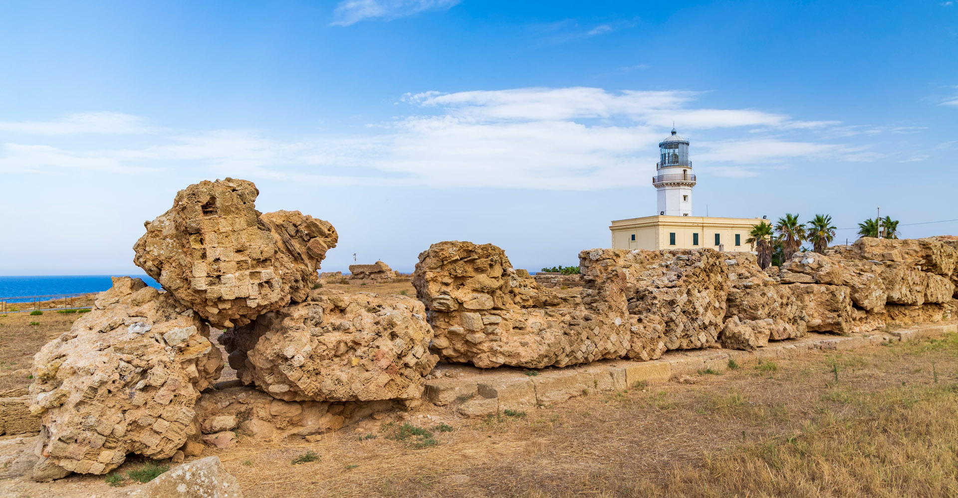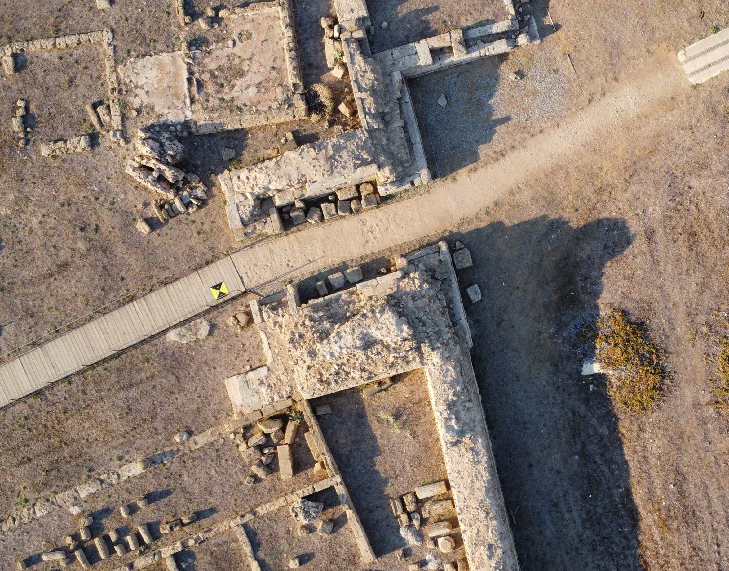 On the western side, three square towers and a monumental entrance gate are preserved. The earliest investigations, conducted by Paolo Orsi in 1910, brought to light the large entrance propylon.