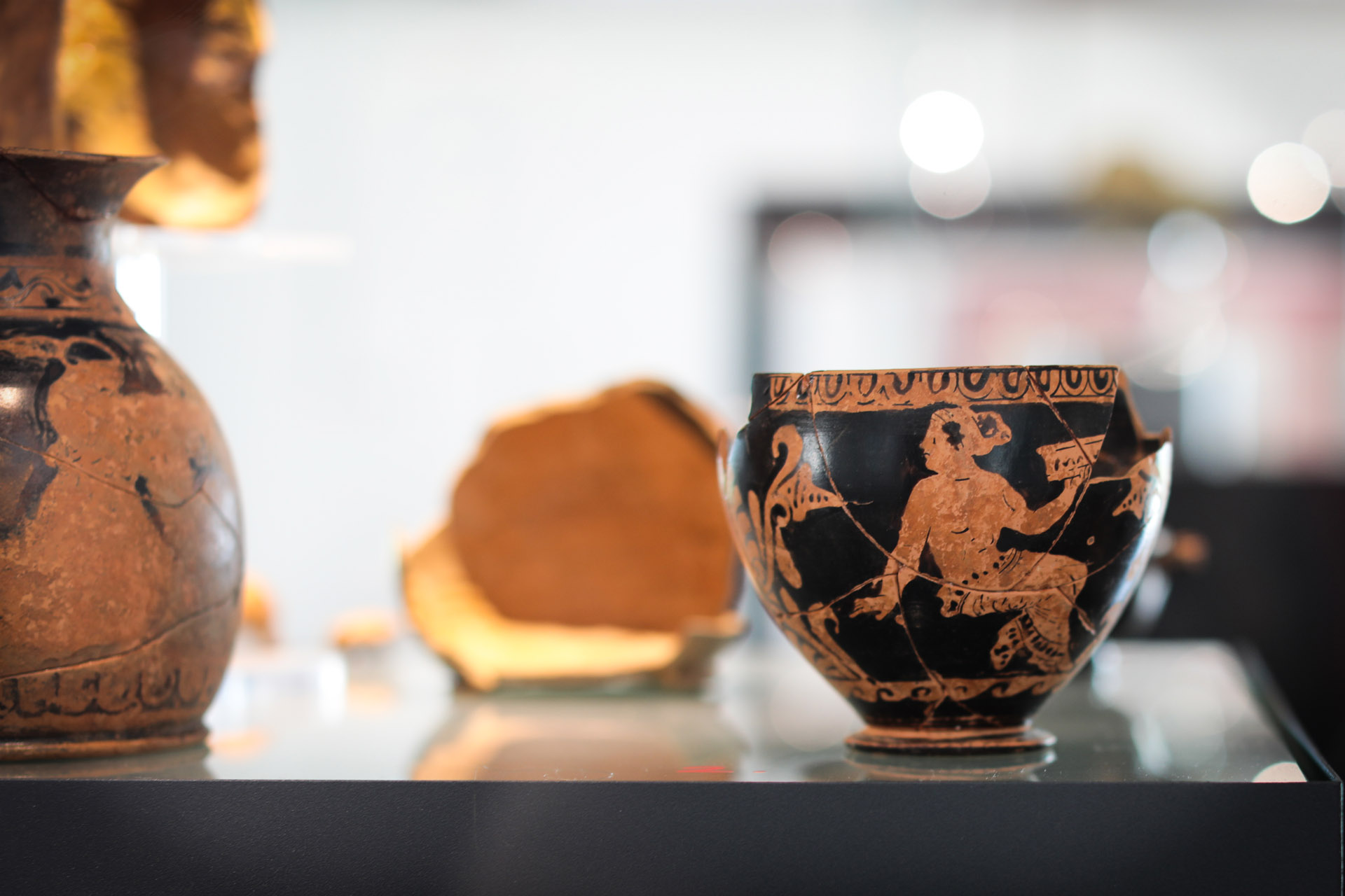 The charging bull (cozzante), an ancient symbol of strength and territorial identity, was chosen as the emblem of the new city and appears both on coinage and on a refined bronze statue. During the 5th and 4th centuries BC, Thurii became a vibrant cultural and artisanal center of Magna Graecia. This is evidenced, among other things, by the splendid locally produced red-figure pottery, which attests to refined craftsmanship and to the city’s deep engagement with the major artistic movements of the Greek world.