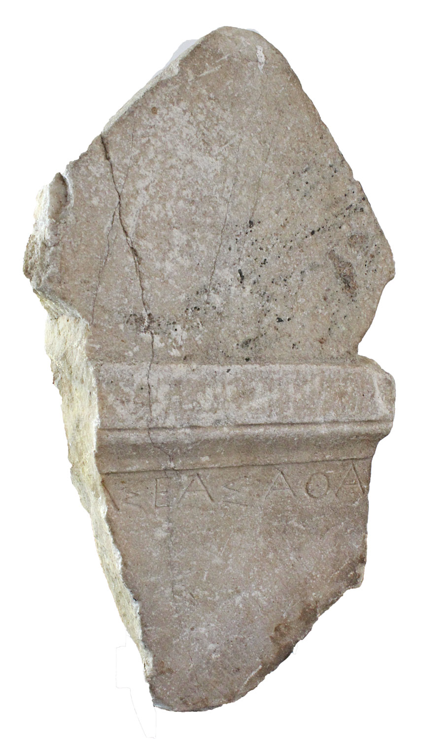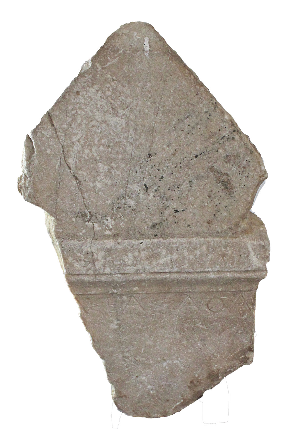 ... leggi di più >Stele funeraria a pilastrino, caratterizzata da una sagoma triangolare, detta “a palmetta”, nella parte superiore. Immediatamente al di sotto presenta una fascia piatta e sporgente (listello), seguita in basso da una modanatura a profilo ricurvo (gola rovescia). Segue, più in basso, un’iscrizione in lettere greche, incisa con molta accuratezza, di cui manca la parte iniziale. Essa riporta alcune lettere del nome del defunto – che forse si chiamava Mnaseas o Truseas – seguite dall’espressione “figlio di Athas”, in forma abbreviata, che equivale al nome di discendenza o appartenenza familiare (patronimico).