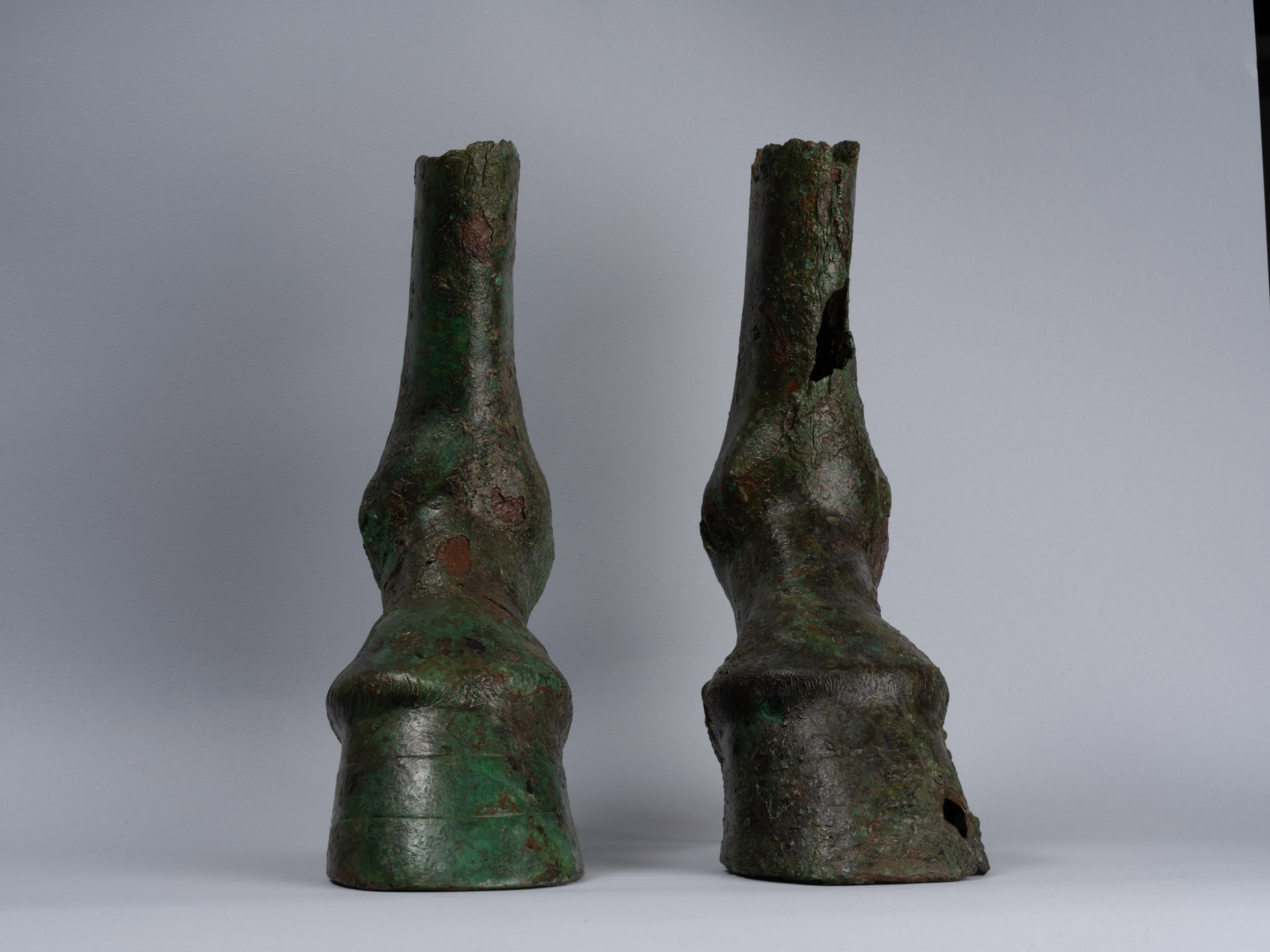 Zampa posteriore destra e zampa posteriore sinistra di un cavallo, conservate fino all’altezza dello stinco.